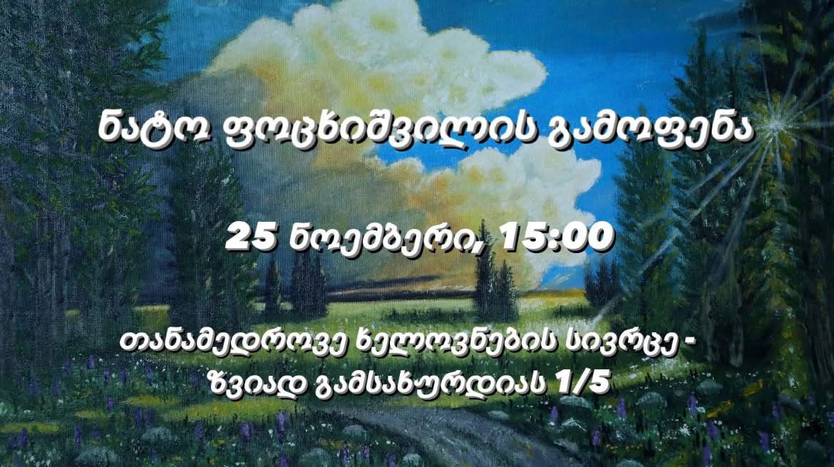 15:00 საათზე, თანამედროვე ხელოვნების სივრცე მასპინძლობს - ნატო ფოცხიშვილის პერსონალურ გამოფენას.